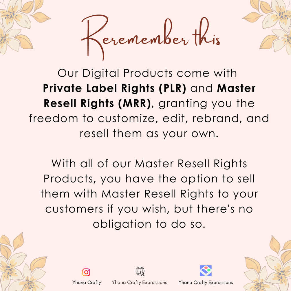 ๐This template comes with PLR (Private Label Rights), meaning you're free to rebrand and resell the final copy/PDF file as your own. This is an excellent choice for educators, coaches, content creators, and digital product sellers who want to monetize their expertise in areas such as mental health, wellness, self-development, productivity, and many more.